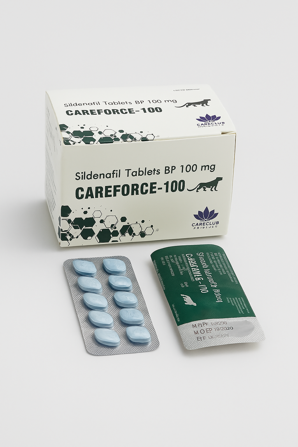 Careforce-100 (Sildenafil Tablets BP 100 mg) by Careclub Pharmaceuticals is a clinically proven oral medication formulated to treat erectile dysfunction (ED) — a common yet often under-discussed condition that affects men’s ability to achieve or maintain an erection suitable for sexual activity. Containing Sildenafil Citrate, the same active ingredient found in other leading ED treatments, Careforce-100 helps men regain control over their sexual health, enhance their confidence, and restore intimacy with their partners.