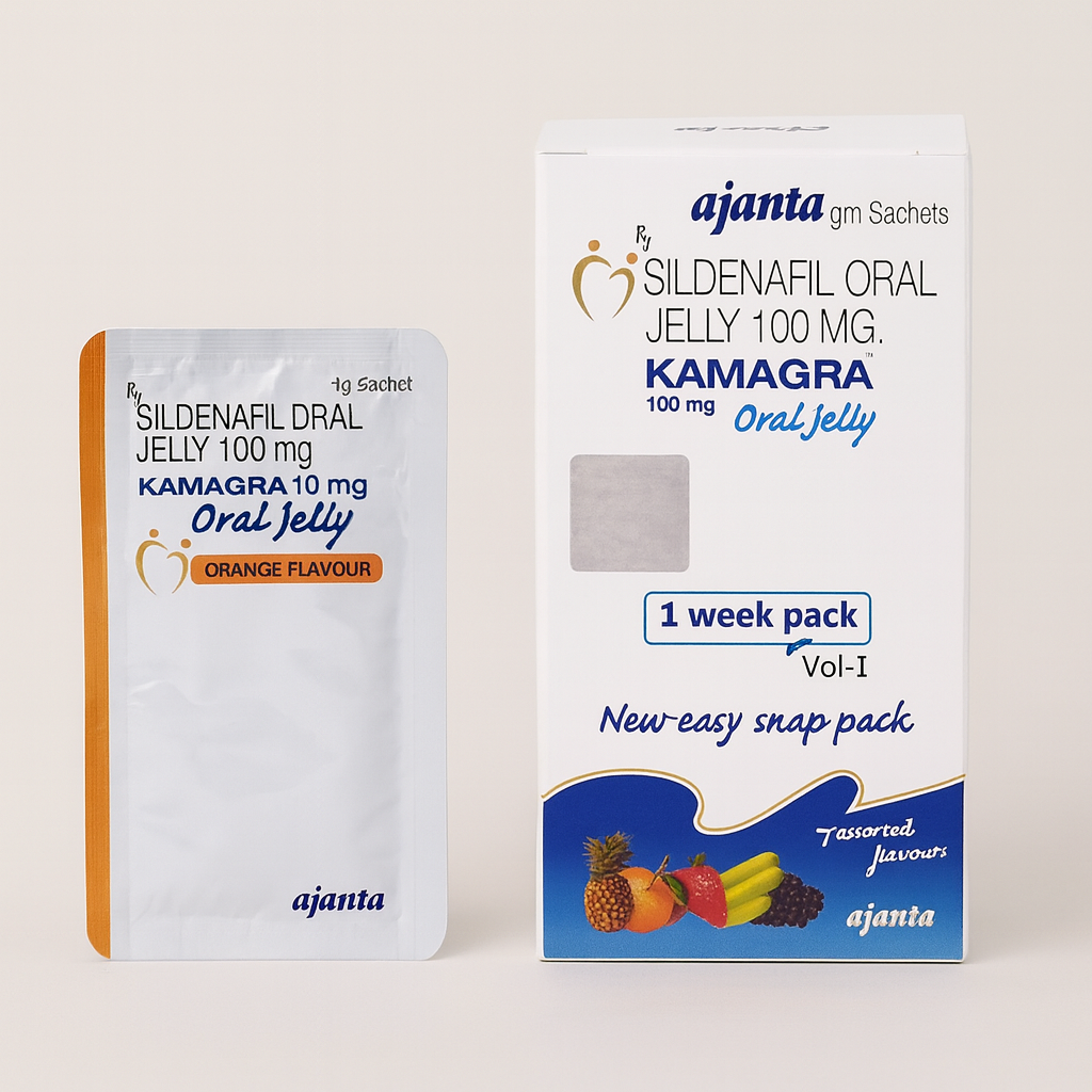 Manufactured by Ajanta Pharma, a globally recognized pharmaceutical company, Kamagra Oral Jelly provides men with a quick, discreet, and effective solution for achieving and maintaining a firm erection. Its innovative oral jelly format ensures rapid absorption, working within 15–30 minutes to deliver reliable results.